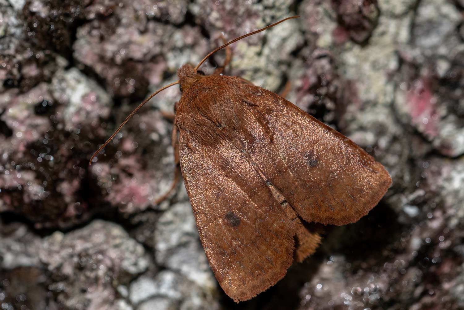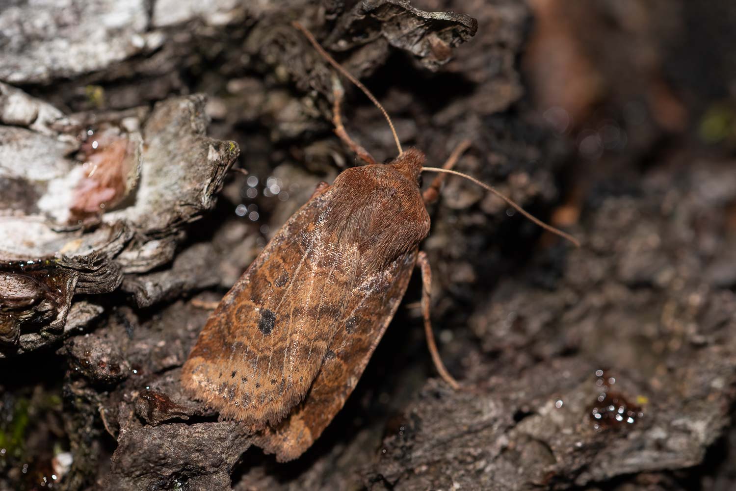 Die Veränderliche Wintereule (Conistra vaccinii, auch Heidelbeer-Wintereule genannt) trägt ihren Namen zu recht: ihre Färbung und Zeichnung ist sehr variabel.